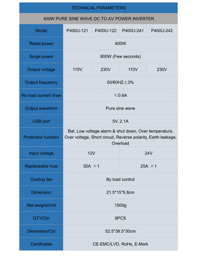 400 Вт чистої синусоїду постійного струму до інвертора змінного струму